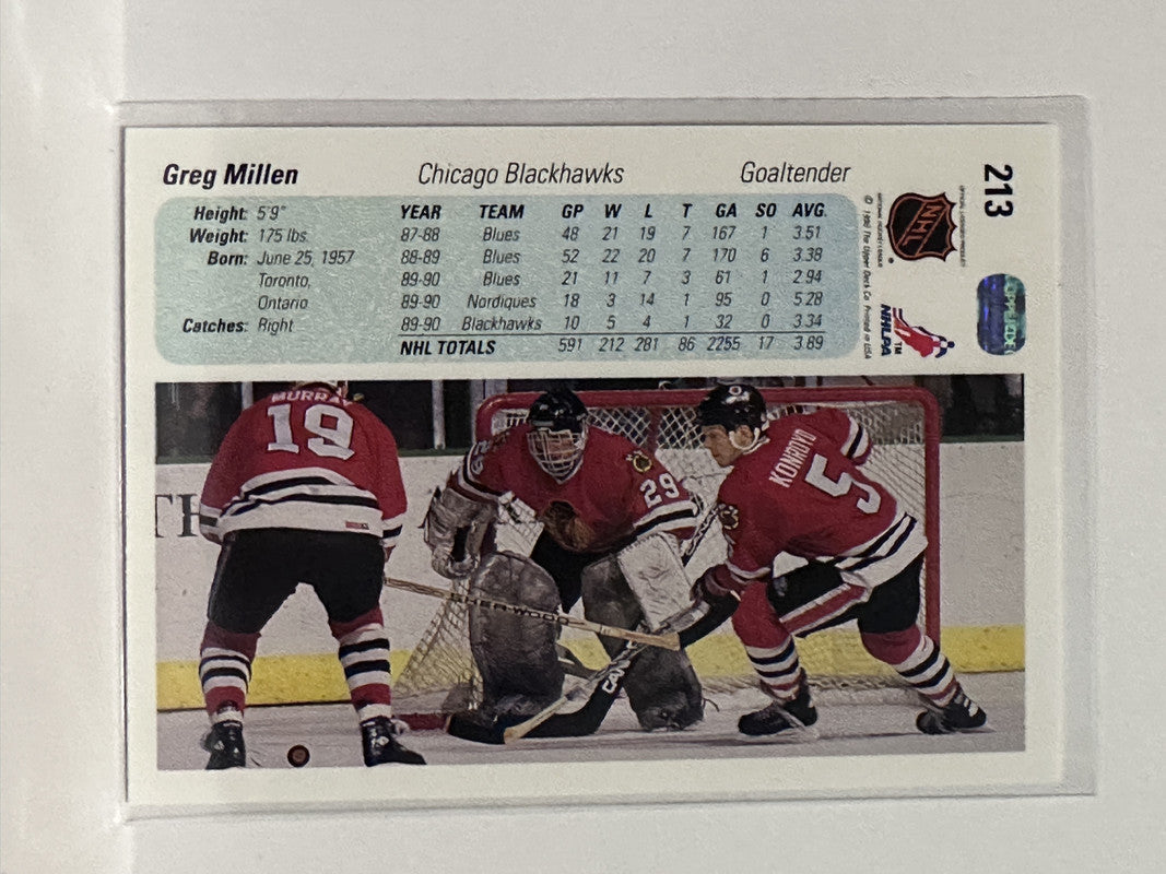 #213 Greg Millen Chicago Blackhawks 90-91 Upper Deck Hockey Card