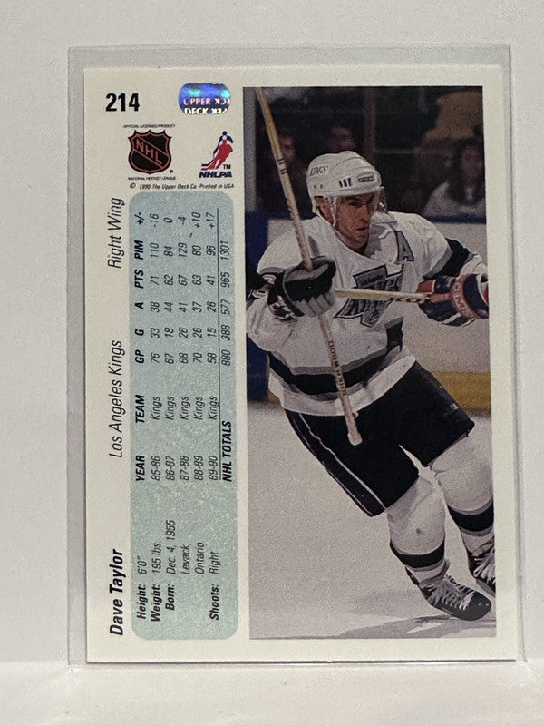 #214 Dave Taylor Los Angeles Kings 90-91 Upper Deck Hockey Card