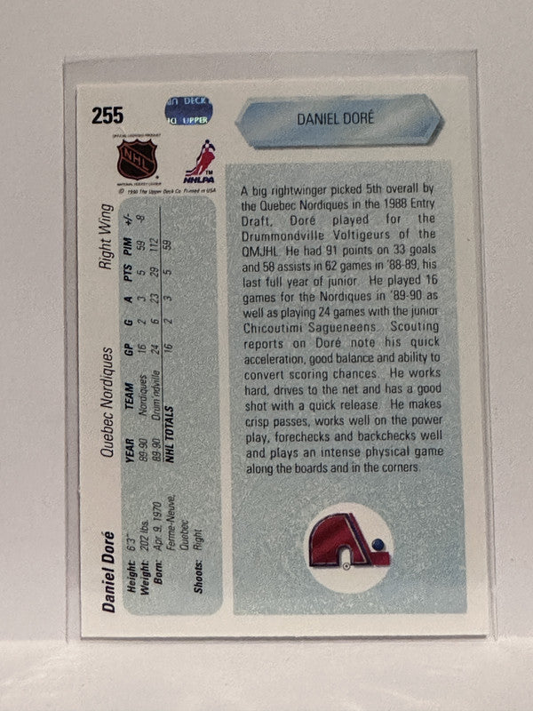 #255 Daniel Dore Star Rookie Quebec Nordiques 90-91 Upper Deck Hockey Card