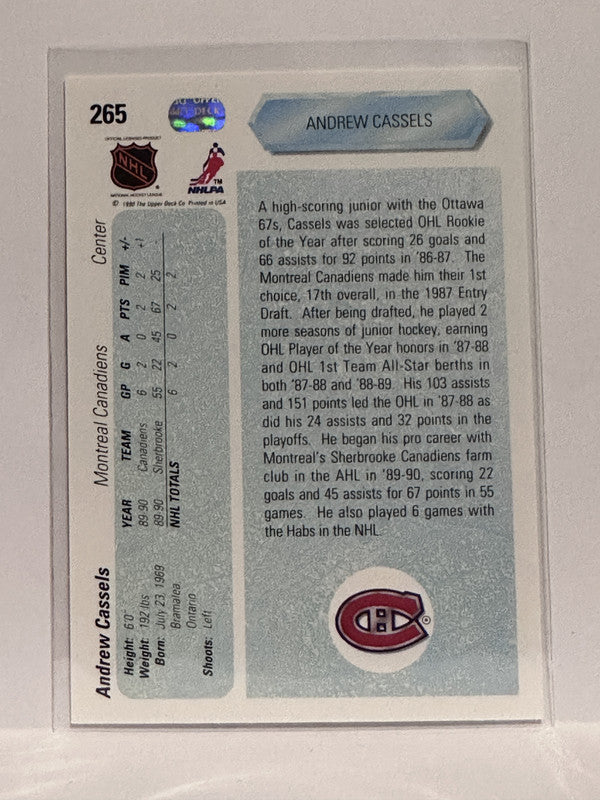 #265 Andrew Cassels Montreal Canadiens 90-91 Upper Deck Hockey Card
