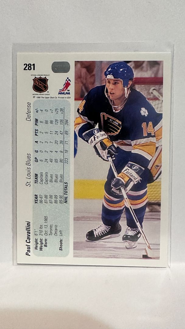 #281 Paul Cavallini St Louis Blues 90-91 Upper Deck Hockey Card