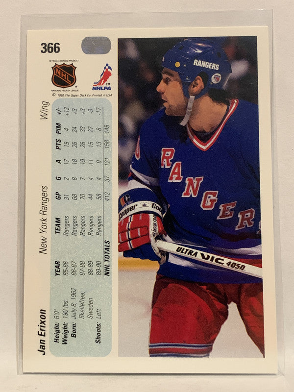 #366 Jan Erixon New York Rangers 1990-91 Upper Deck Hockey Card NHL