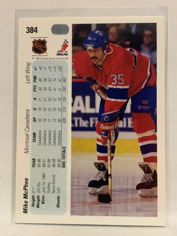 #384 Mike McPhee Montreal Canadiens 1990-91 Upper Deck Hockey Card NHL