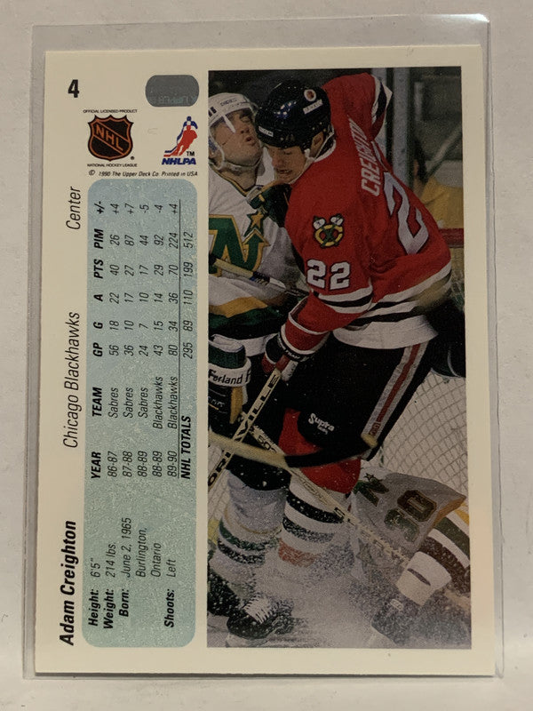 #4 Adam Creighton Chicago Blackhawks 1990-91 Upper Deck Hockey Card NHL