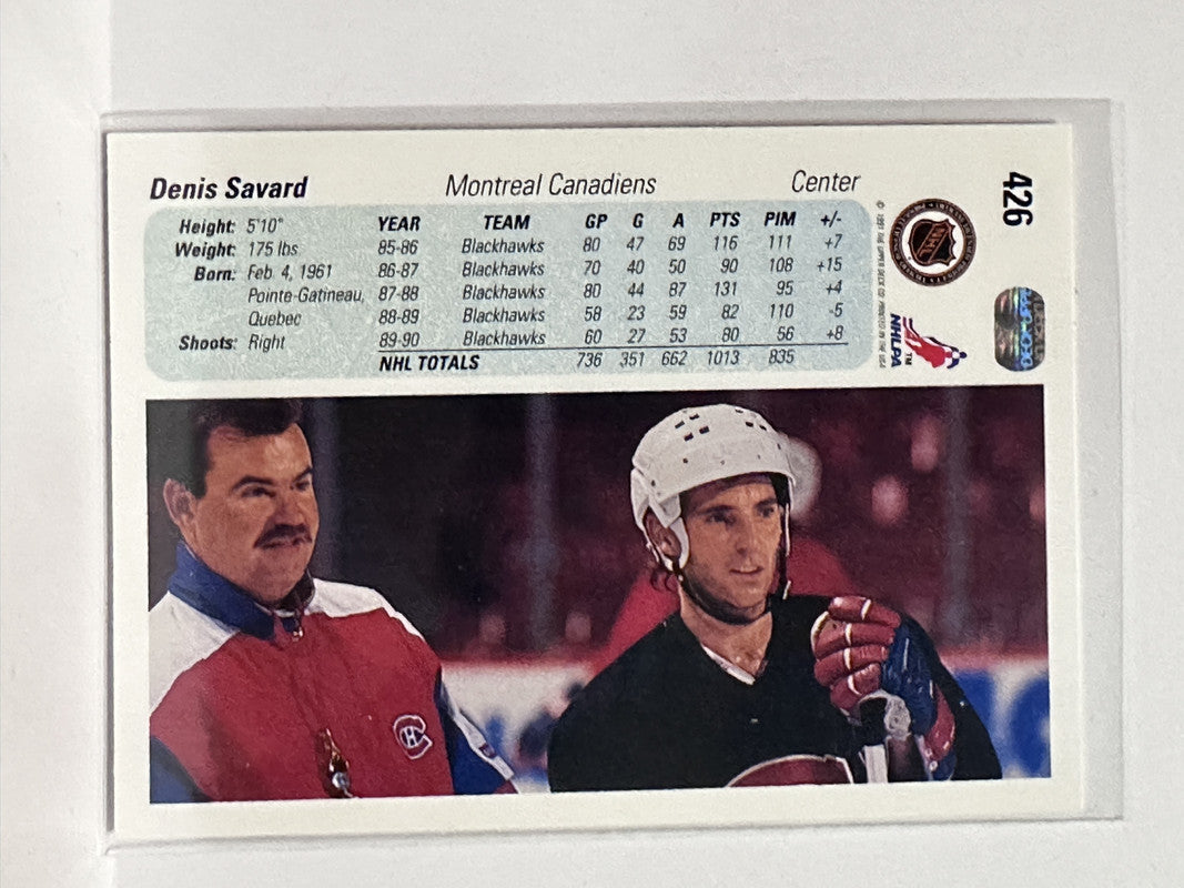 #426 Denis Savard Montreal Canadiens 90-91 Upper Deck Hockey Card