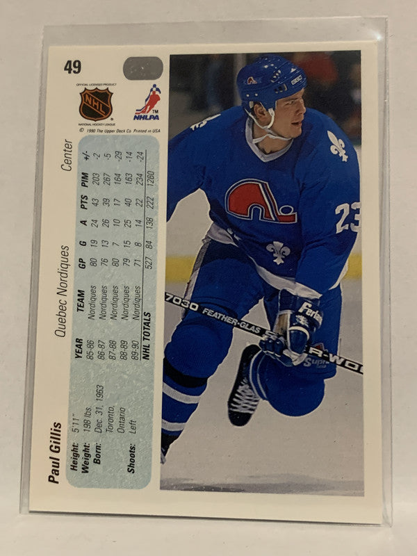 #49 Paul Gillis Quebec Nordiques 1990-91 Upper Deck Hockey Card NHL