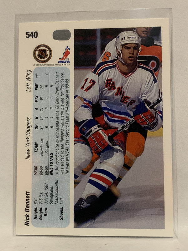 #540 Rick Bennett New York Rangers 1990-91 Upper Deck Hockey Card NHL