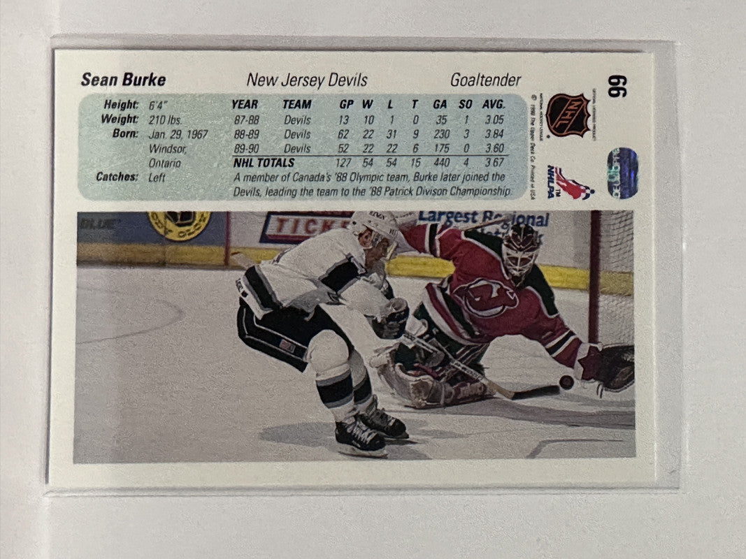 #66 Sean Burke New Jersey Devils 90-91 Upper Deck Hockey Card