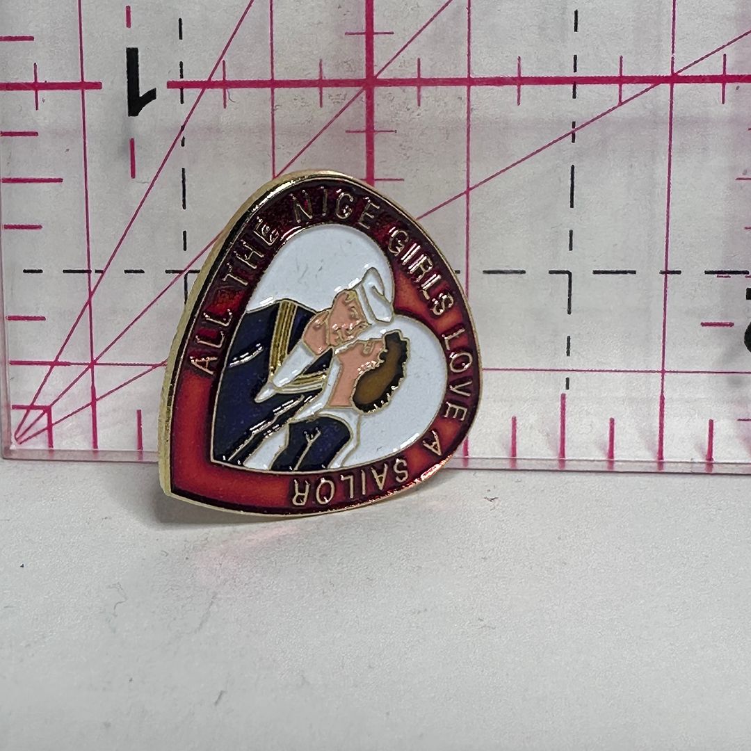 All The Nice Girls Love a Sailor Slogan Heart Lapel Pin