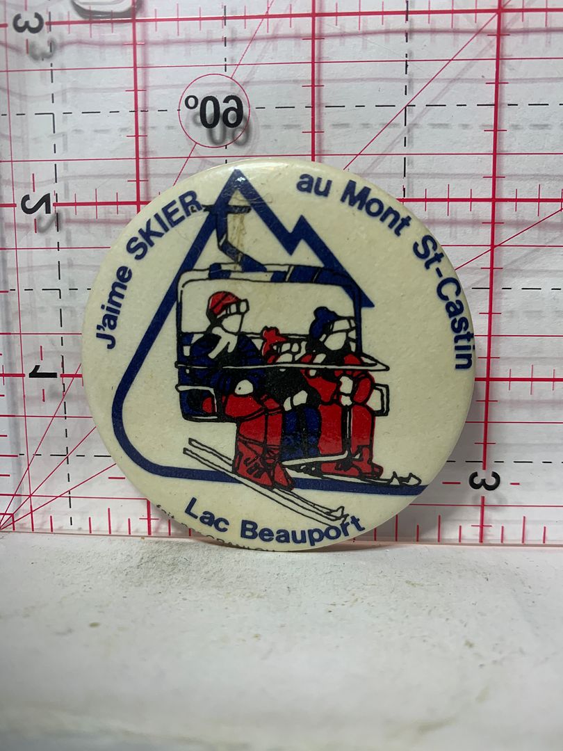 J'aime Skier au Mont St Castin Lac Beauport Button Pinback