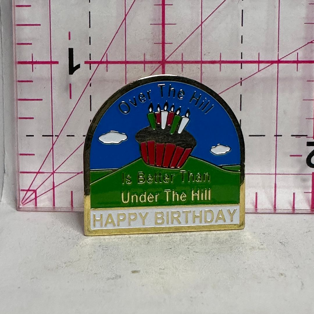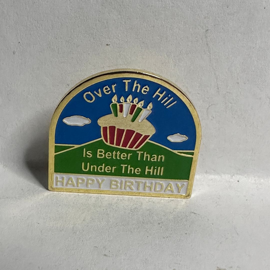 Over the Hill Happy Birthdat Slogan Lapel Pin