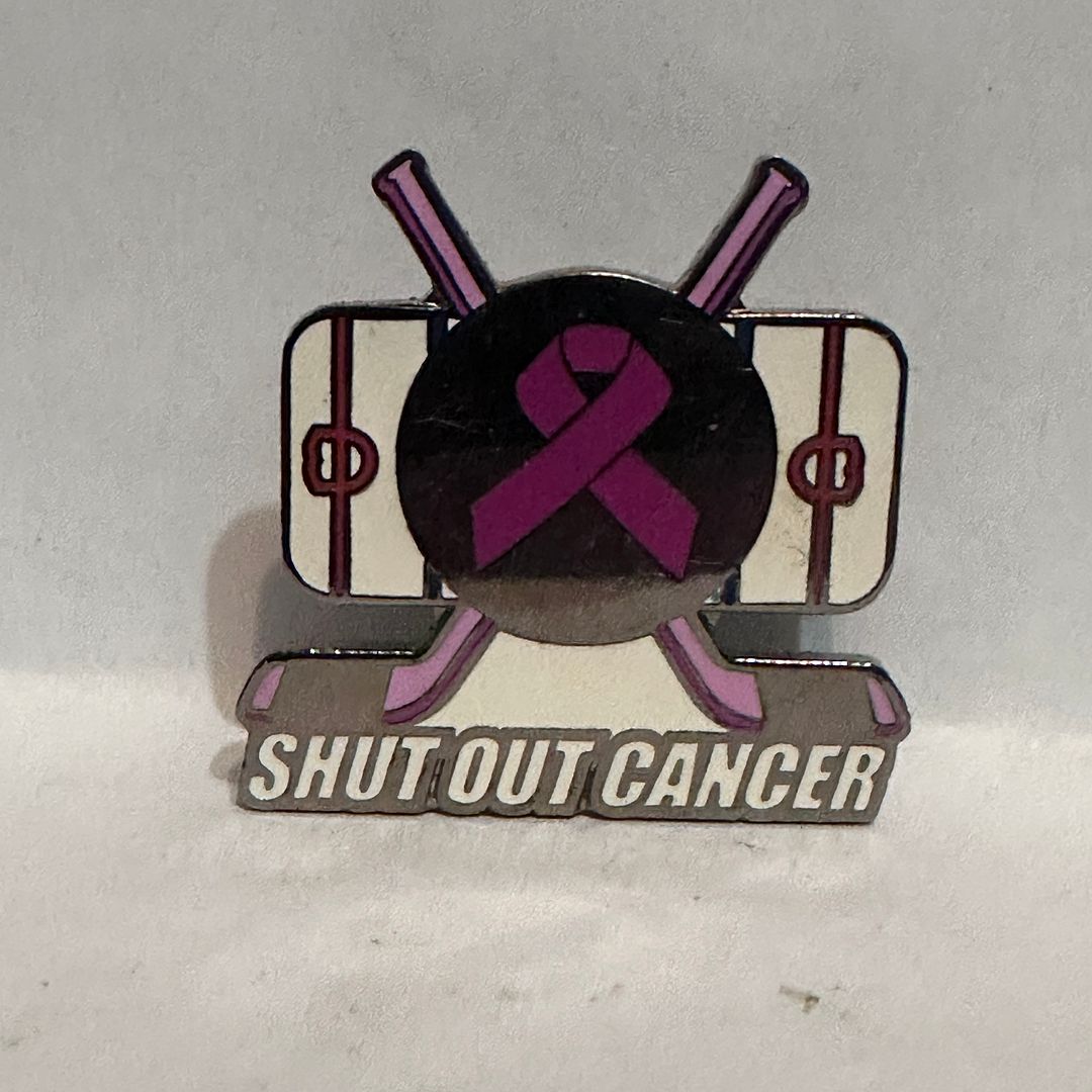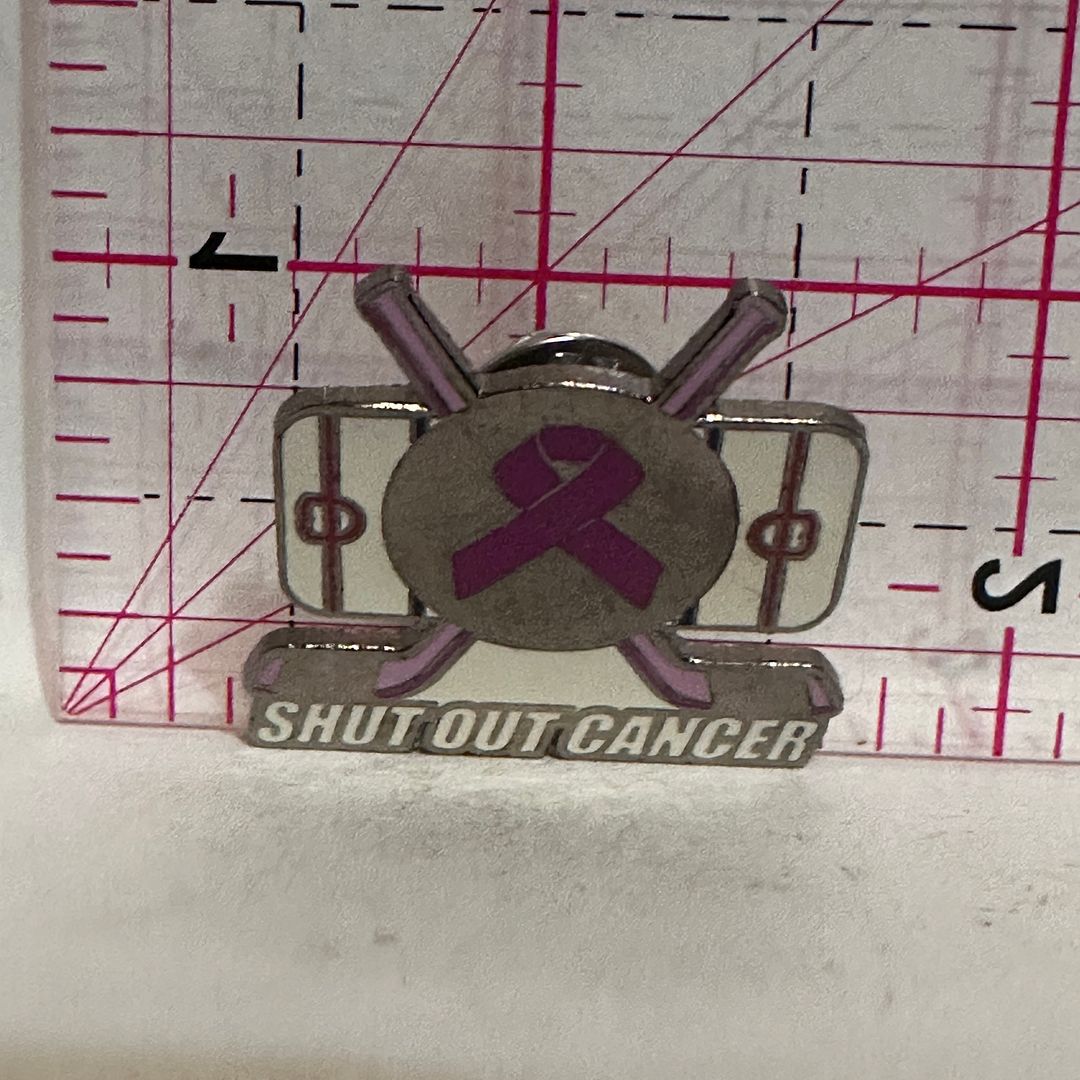 Purple Ribbon Shut Out Cancer Hockey Lapel Pin