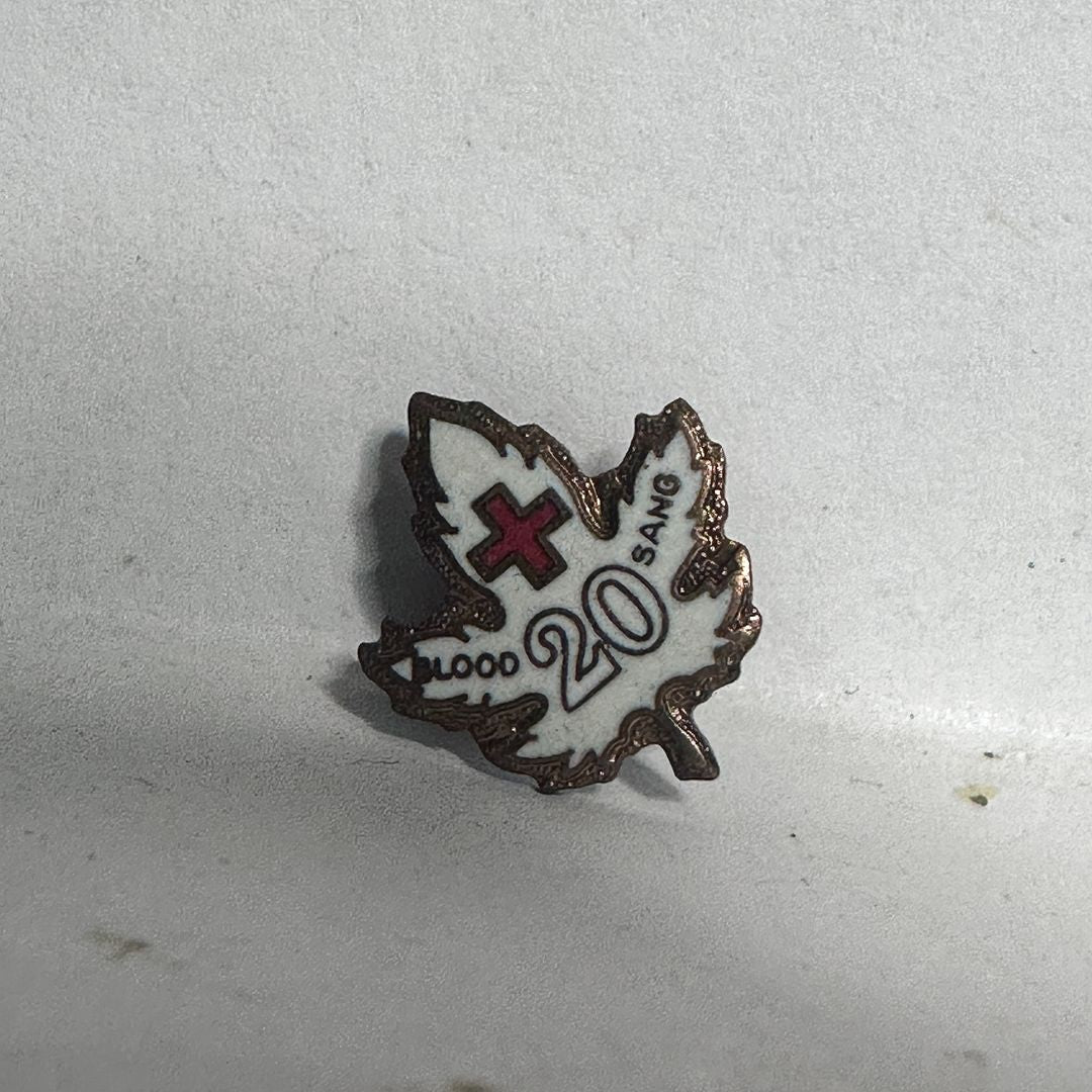 Red Cross Blood 20th Donation Canada Maple Leaf Lapel Pin