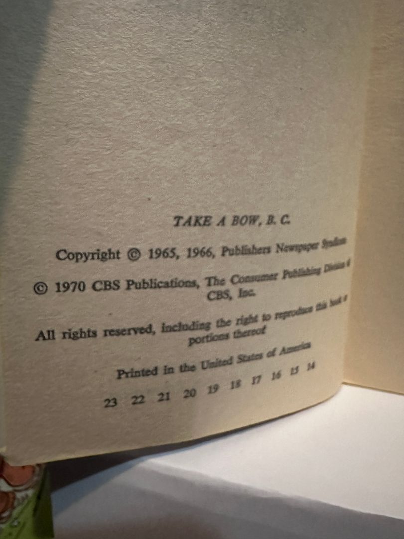 Take a Bow B.C. Johnny Hart © 1970 Comic Digest Book Paperback