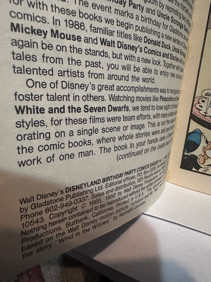 Walt Disney's Disneyland Birthday Party Gladstone © 1985 Comic Digest Book Paperback
