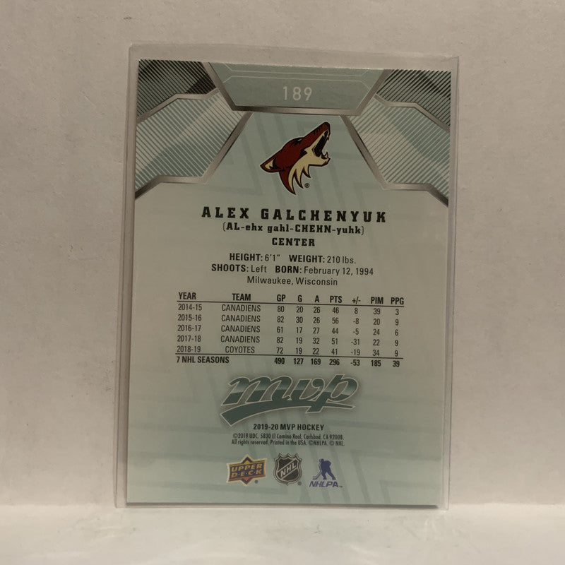 #189 Alex Galchenyuk Arizona Coyotes 2019-20 Upper Deck MVP Hockey Card KZ
