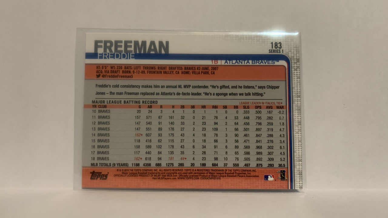 #183 Freddie Freeman Atlanta Braves 2019 Topps Series 1 Baseball Card