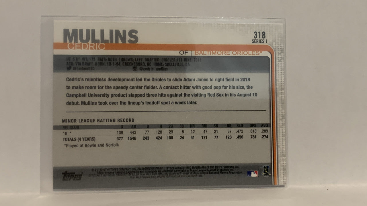 #318 Cedric Mullins Rookie Baltimore Orioles 2019 Topps Series 1 Baseball Card