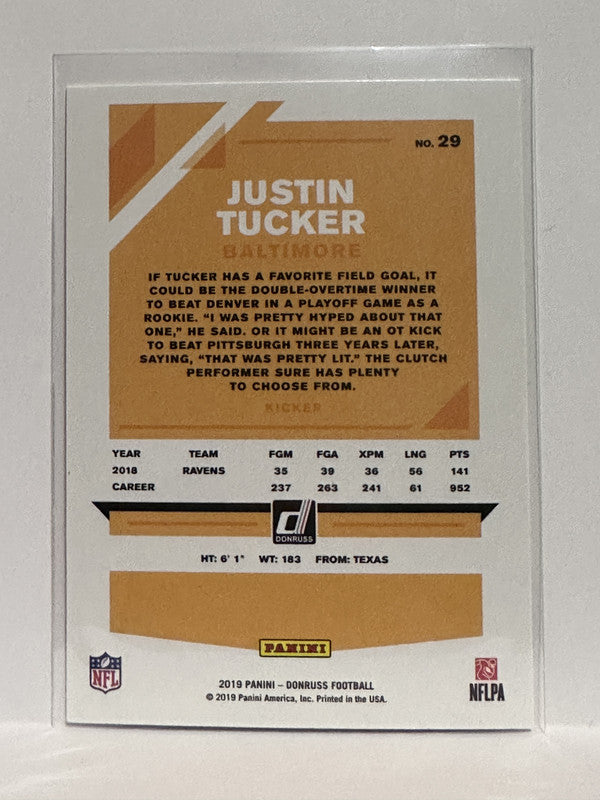 #29 Justin Tucker Baltimore Ravens 2019 Donruss Football Card