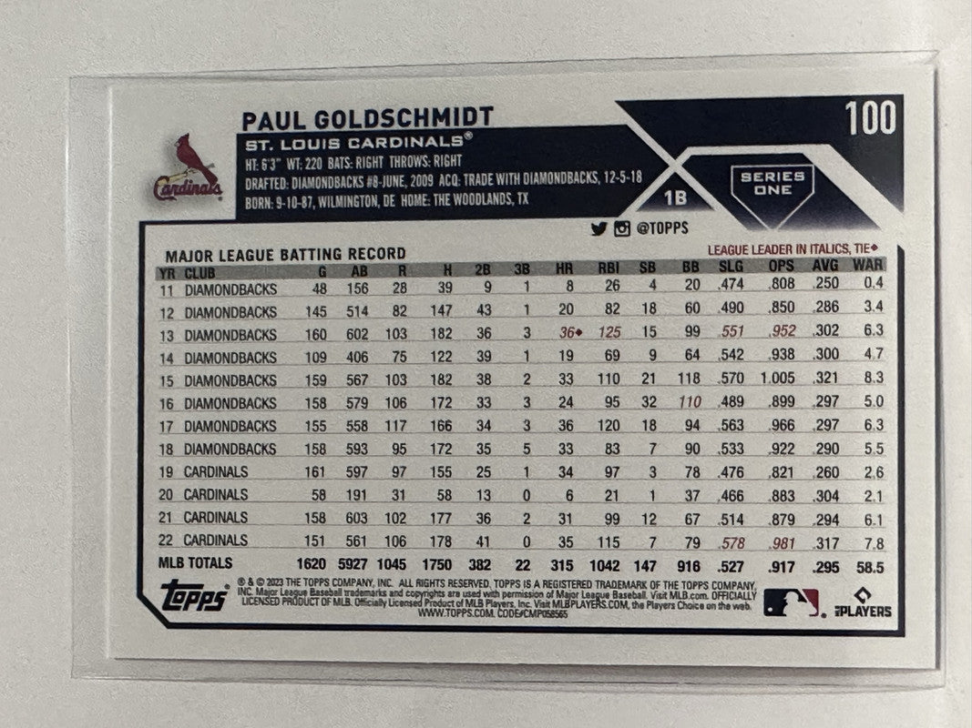 #100 Paul Goldschmidt St Louis Cardinals 2023 Topps Series One Baseball Card