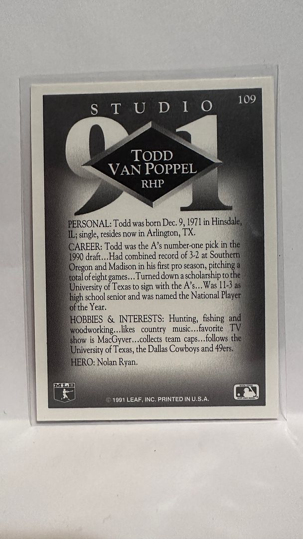 #109 Todd Van Poppel Oakland Athletics 1991 Studio Baseball Card
