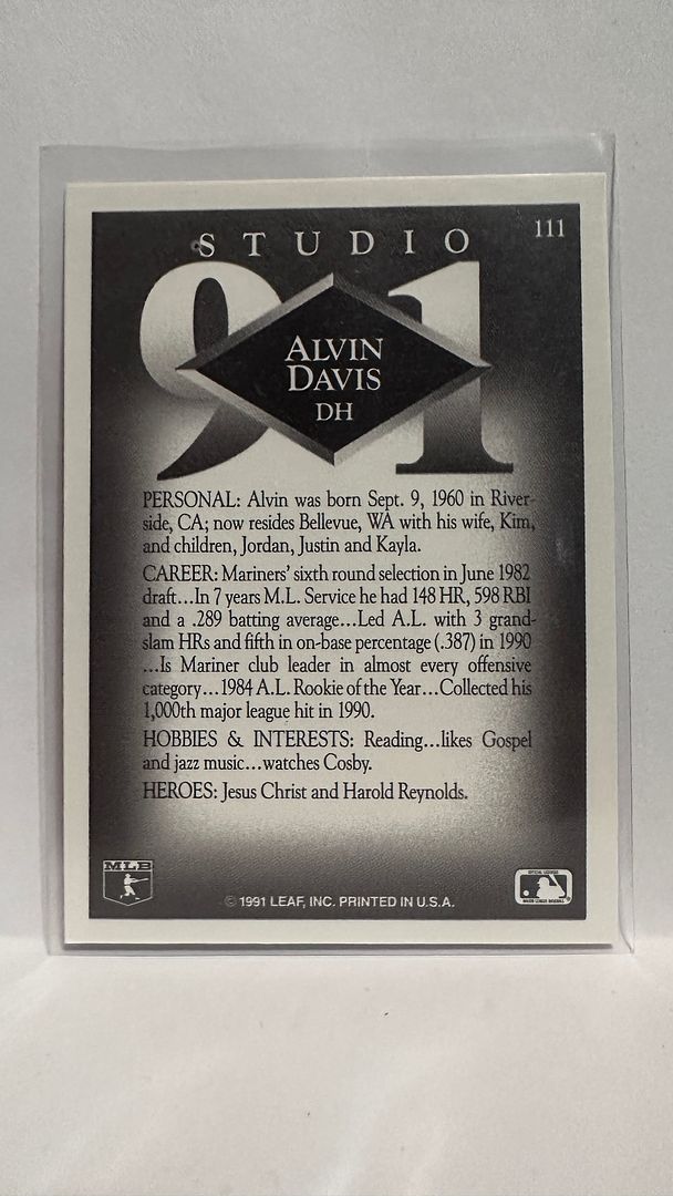 #111 Alvin Davis Seattle Mariners 1991 Studio Baseball Card