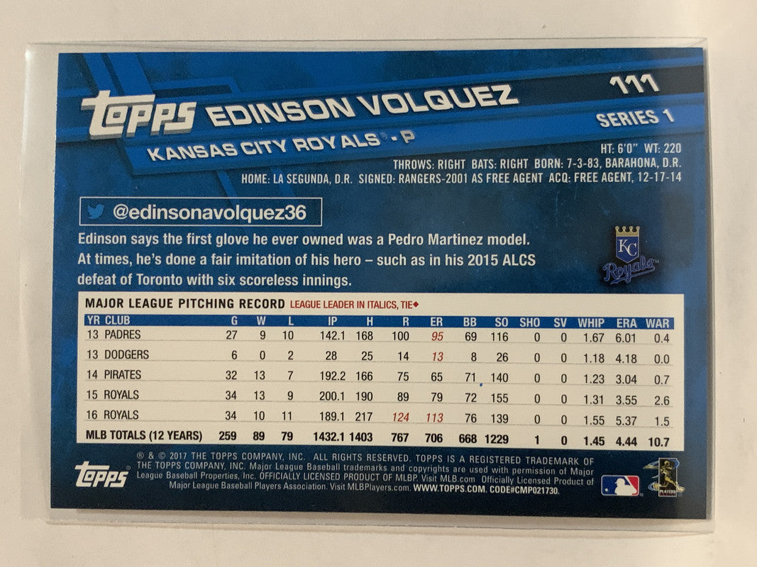 #111 Edinson Volquez Kansas City Royals 2017 Topps Series One Baseball Card