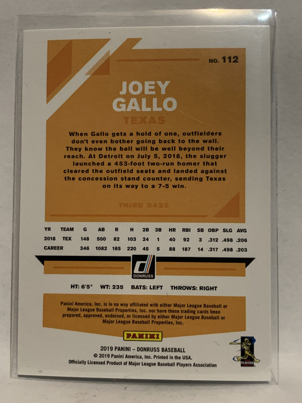 #112 Joey Gallo Texas Rangers 2019 Donruss Baseball Card