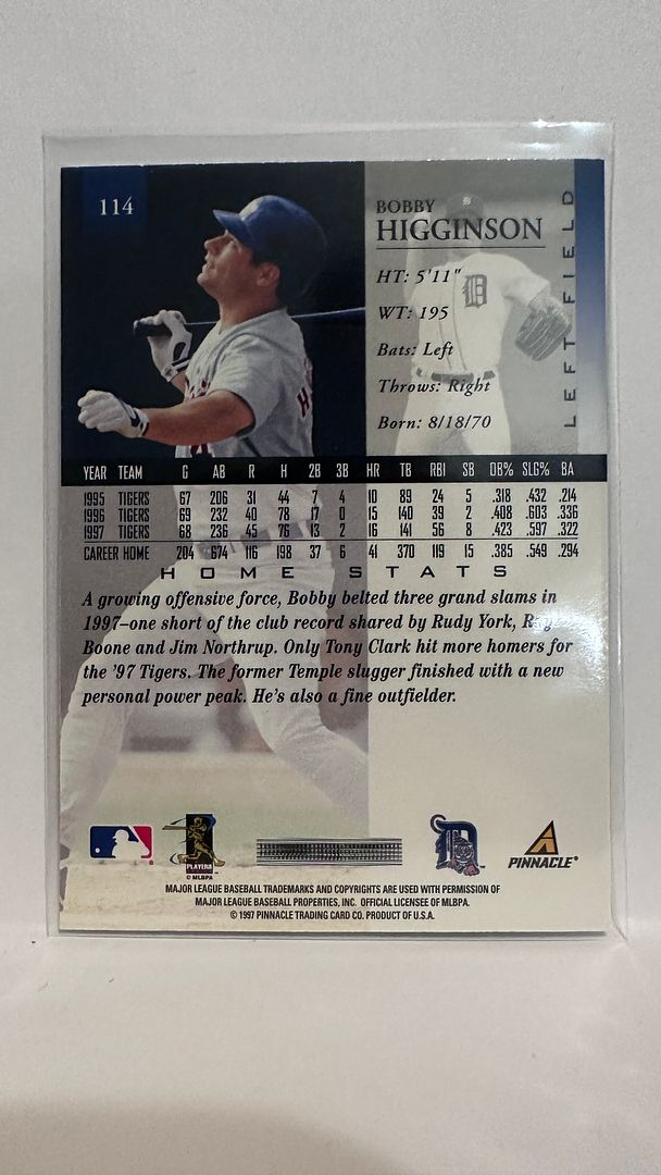 #114 Bobby Higginson Detroit Tigers 1997 Pinnacle Baseball Card