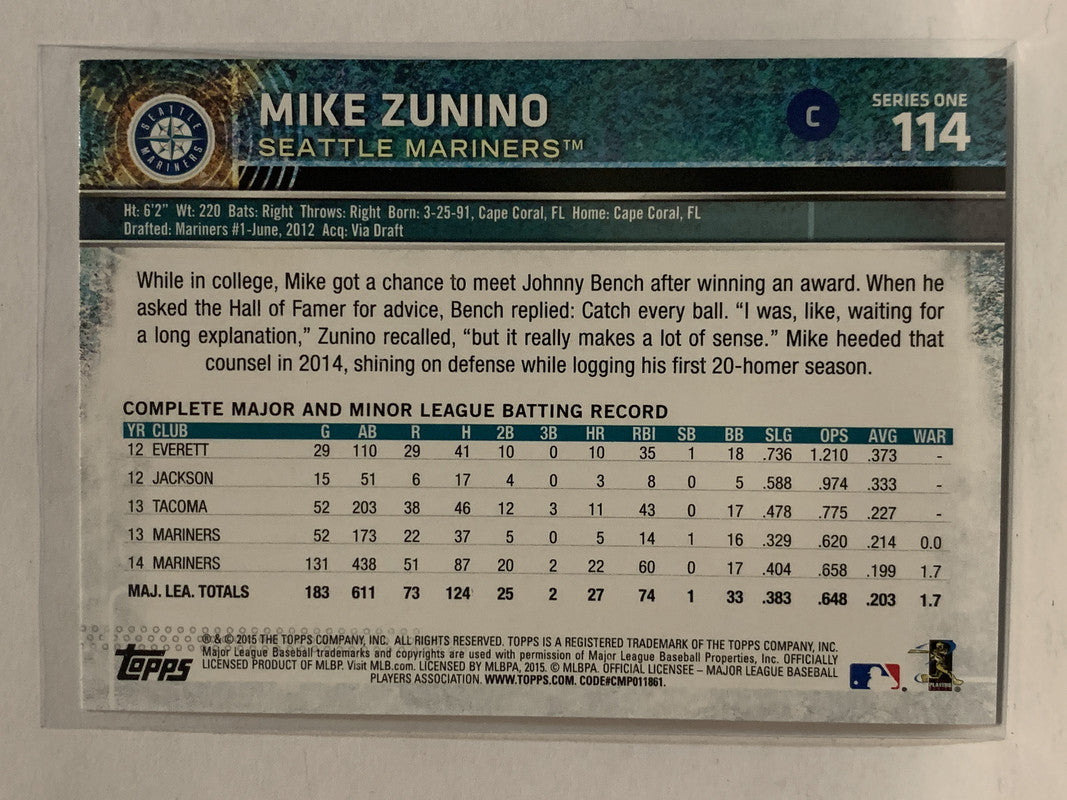 #114 Mike Zunino Seattle Mariners 2015 Topps Series One Baseball Card