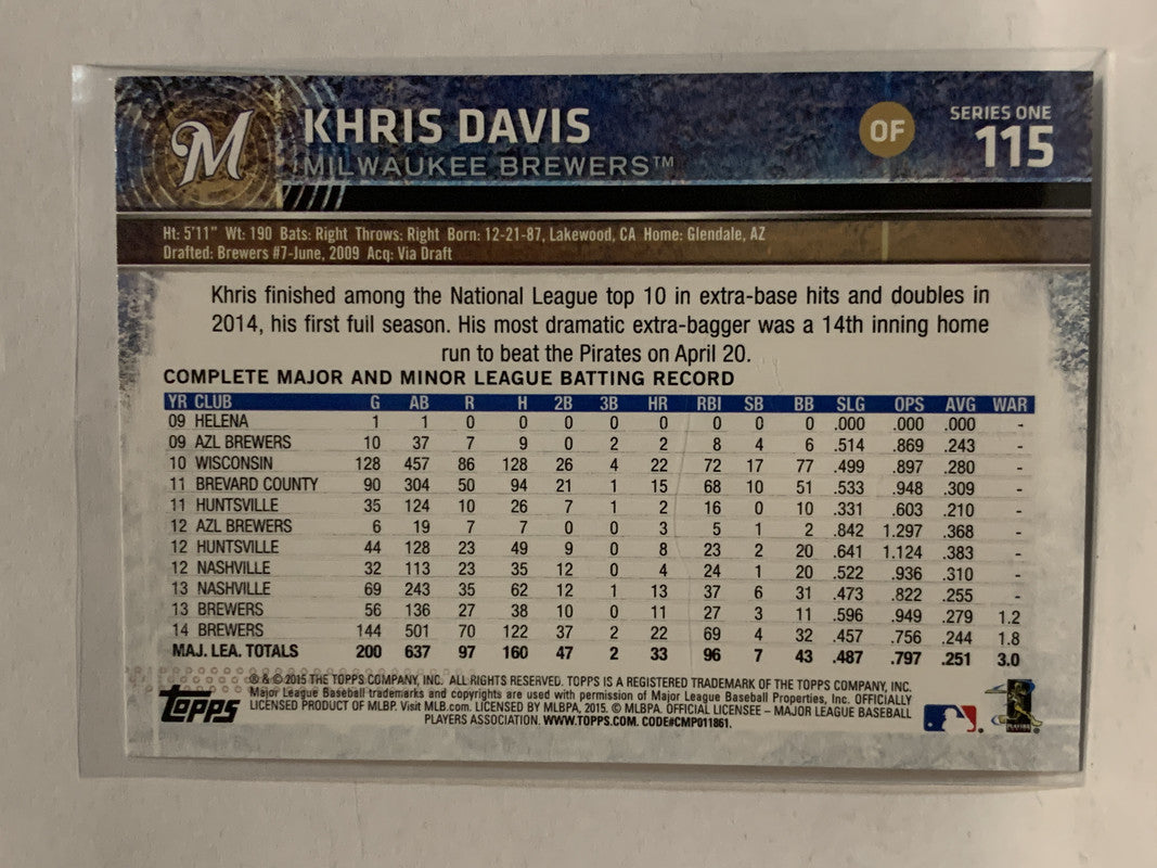 #115 Khris Davis Milwaukee Brewers 2015 Topps Series One Baseball Card