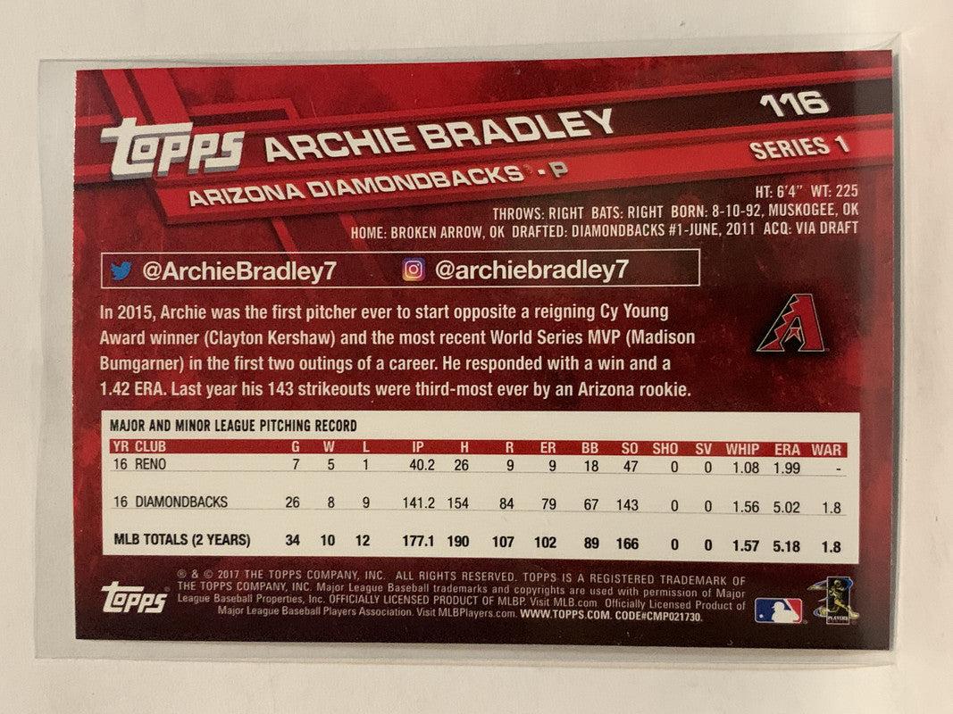 #116 Archie Bradley Arizona Diamondbacks 2017 Topps Series One Baseball Card