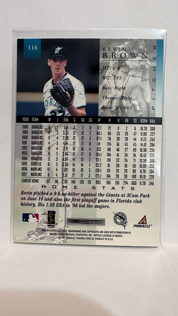 #116 Kevin Brown Florida Marlins 1997 Pinnacle Baseball Card