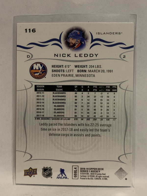 #116 Nick Leddy New York Islanders 2018-19 Upper Deck Series One Baseball Card