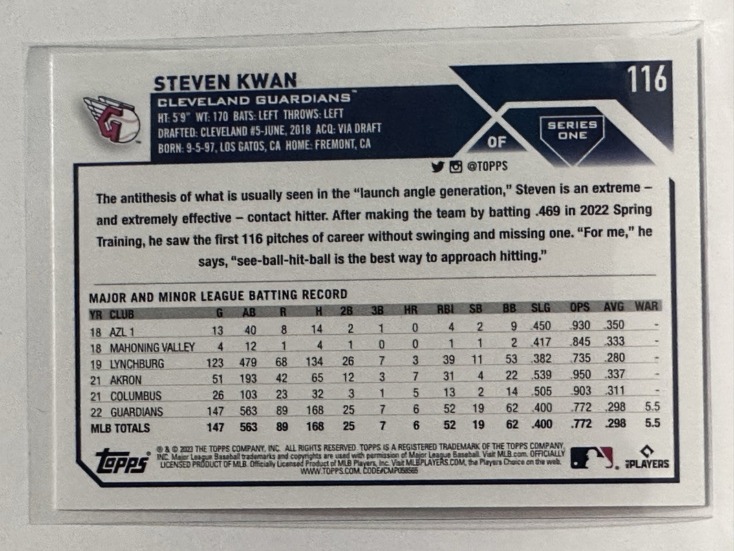 #116 Steven Kwan Topps All Star Rookie Cleveland Guardians 2023 Topps Series One Baseball Card