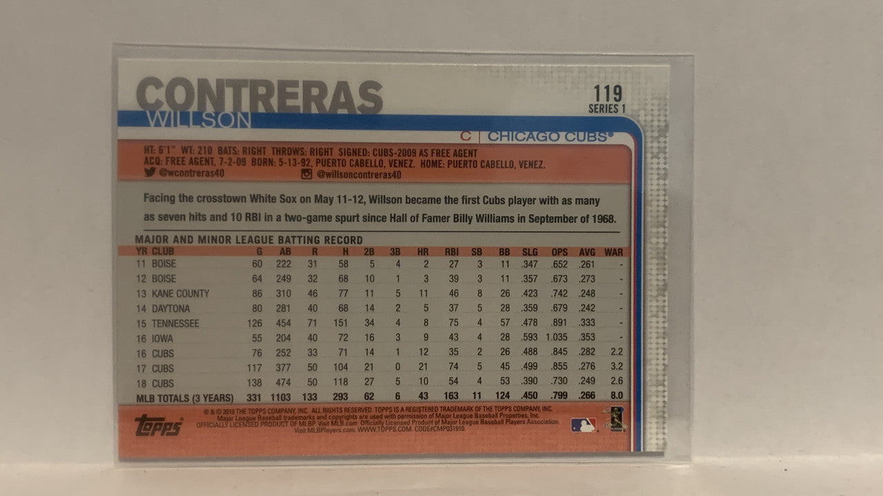 #119 Willson Contreras Chicago Cubs 2019 Topps Series 1 Baseball Card
