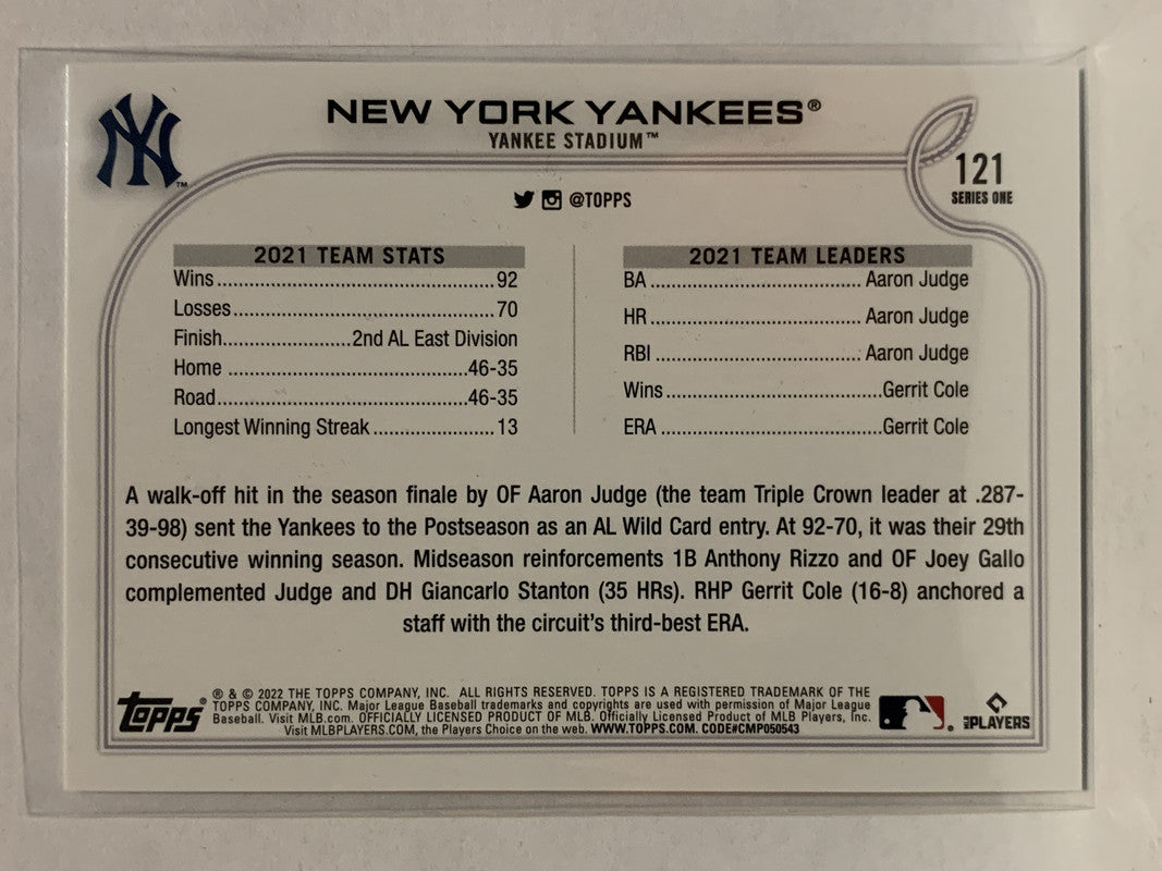 #121 Yankee Stadium New York Yankees 2022 Topps Series One Baseball Card MLB