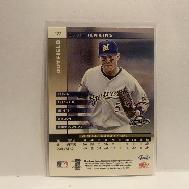 #122 Geoff Jenkins Milwaukee Brewers 2002 Donruss Leaf Baseball Card HF