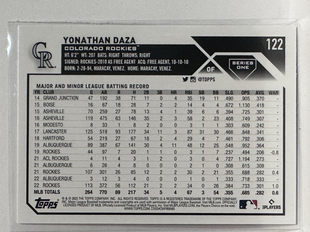 #122 Yonathan Daza Colorado Rockies 2023 Topps Series One Baseball Card