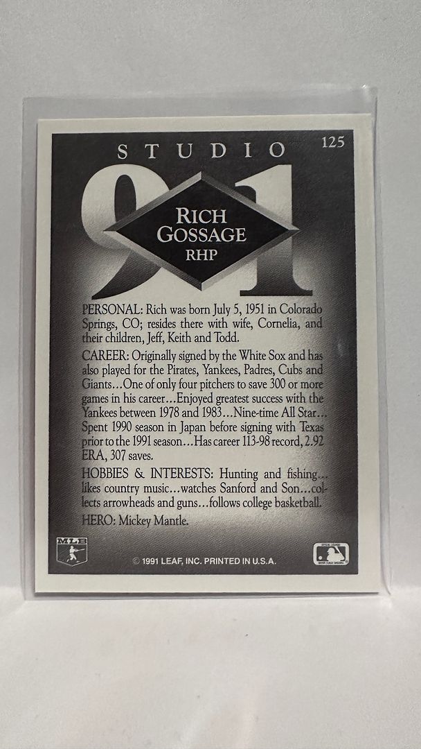 #125 Rich Gossage Texas Rangers 1991 Studio Baseball Card