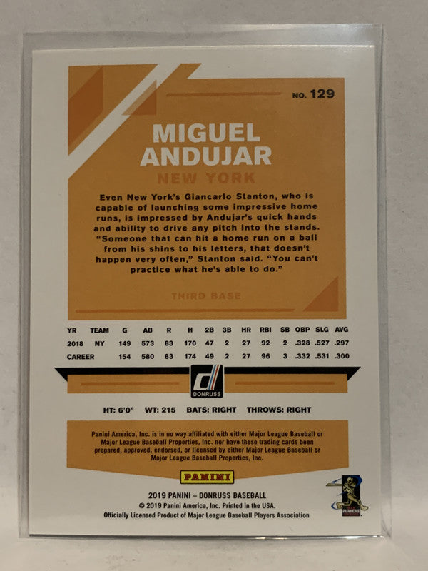 #129 Miguel Andujar New York Yankees 2019 Donruss Baseball Card