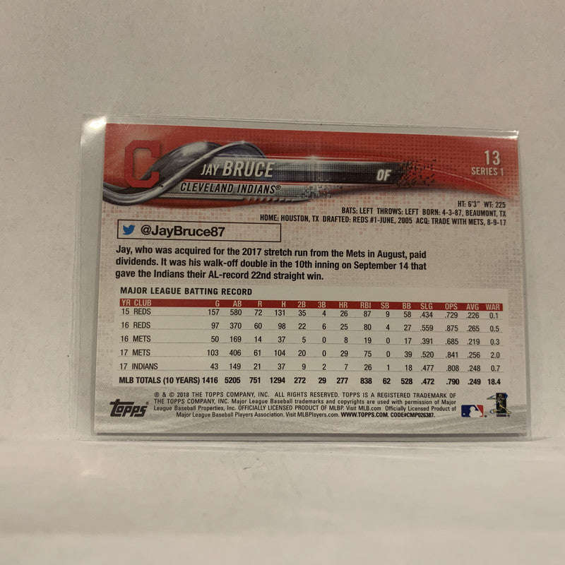 #13 Jay Bruce Cleveland Indians Series 1 2018 Topps Baseball Card A1T