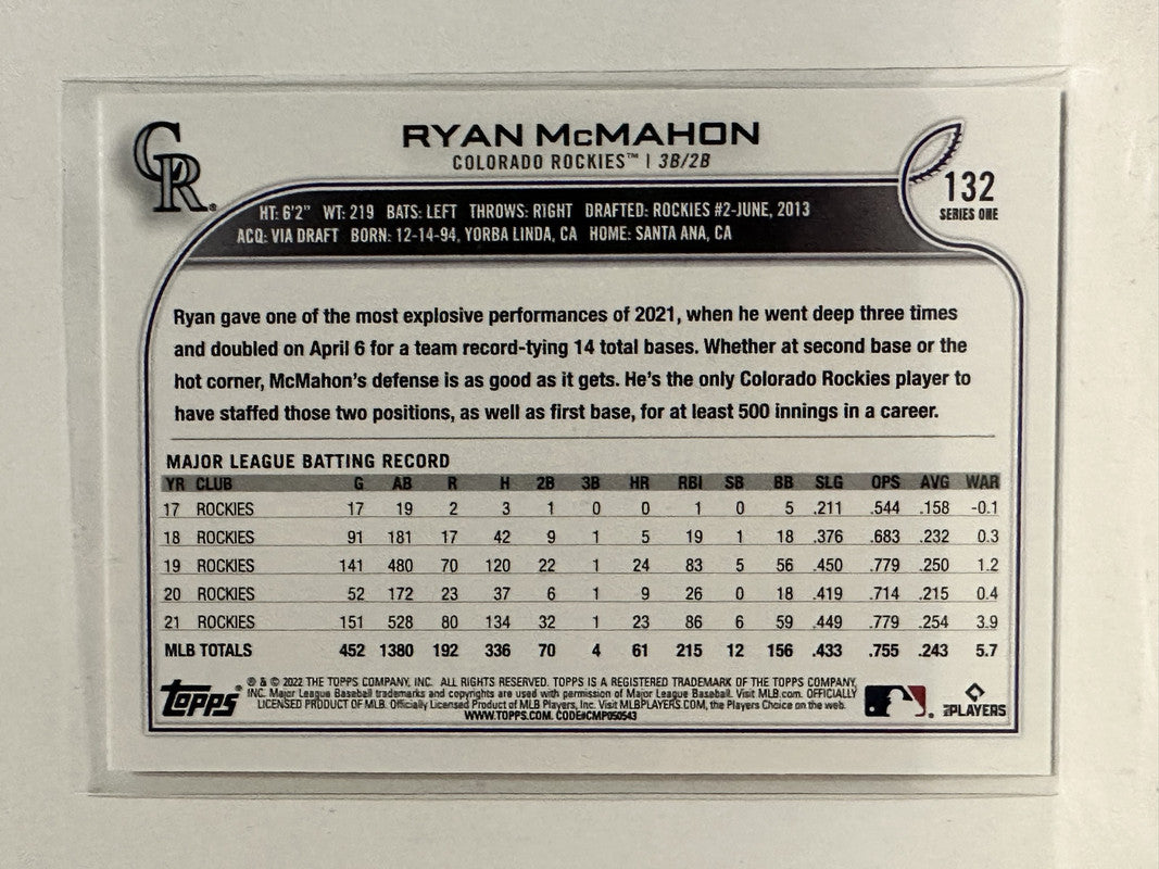 #132 Ryan McMahon Colorado Rockies 2022 Topps Series One Baseball Card