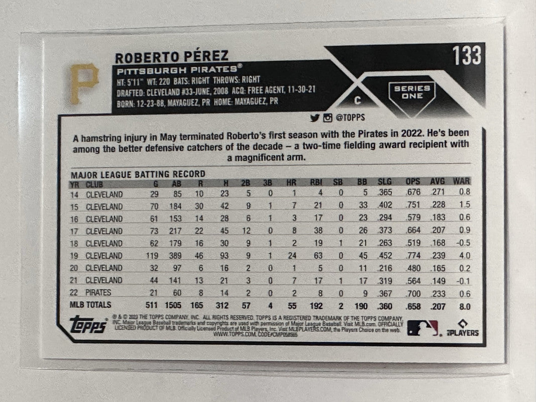 #133 Roberto Perez Pittsburgh Pirates 2023 Topps Series One Baseball Card