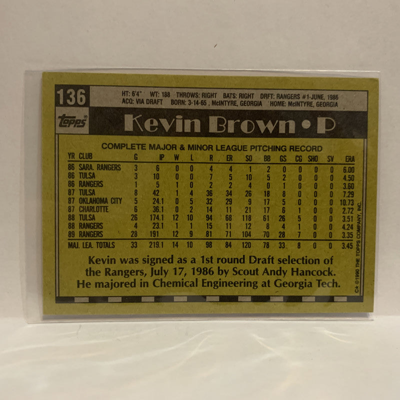 #136 Kevin Brown Texas Rangers 1990 Topps Baseball Card IS