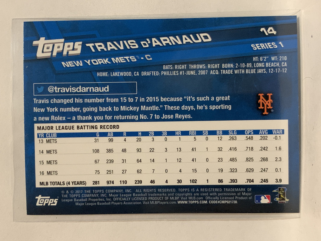 #14 Travis D'Arnaud New York Mets 2017 Topps Series One Baseball Card
