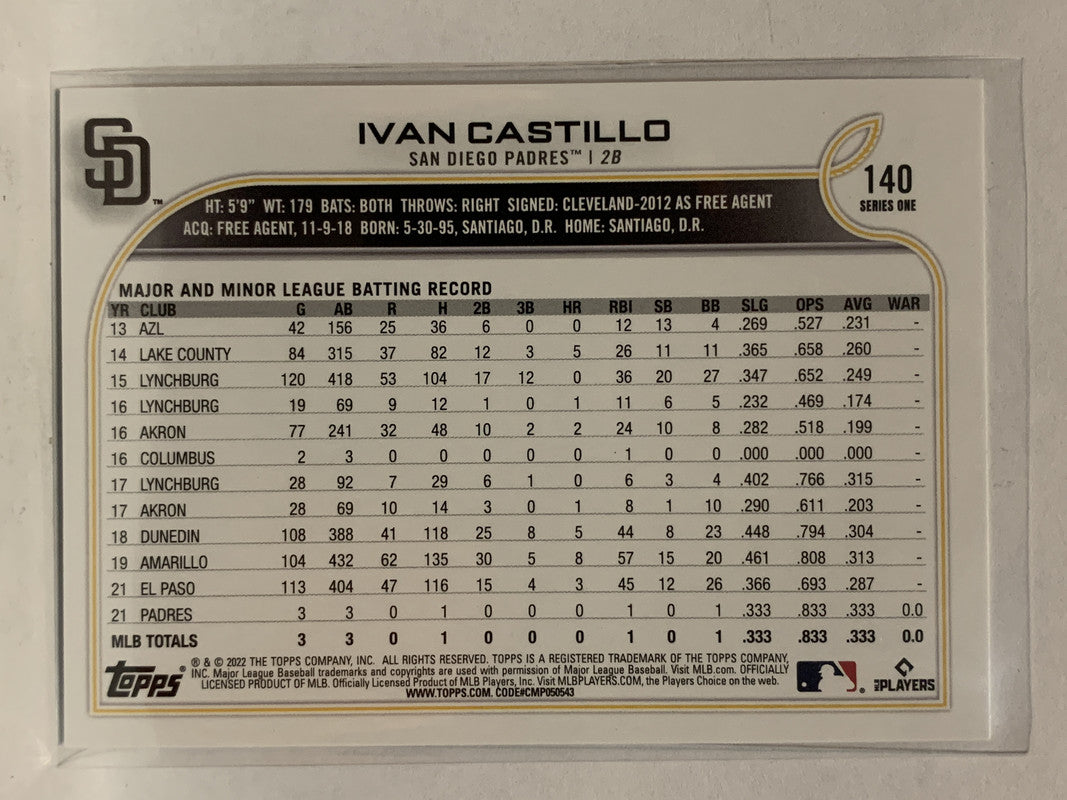 #140 Ivan Castillo Rookie San Diego Padres 2022 Topps Series One Baseball Card MLB