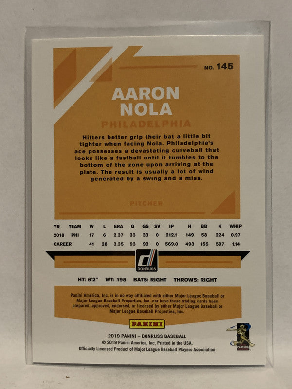 #145 Aaron Nola Philadelphia Phillies 2019 Donruss Baseball Card