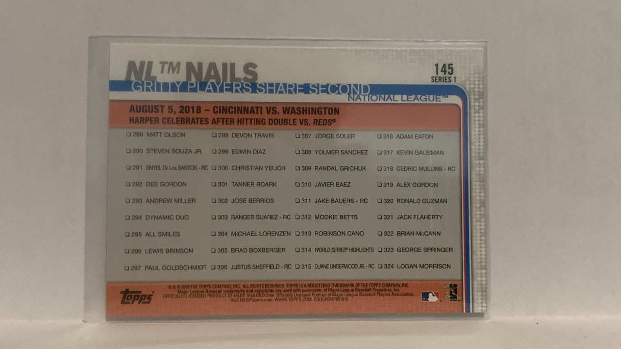 #145 NL Nails Gritty Players Share Second 2019 Topps Series 1 Baseball Card