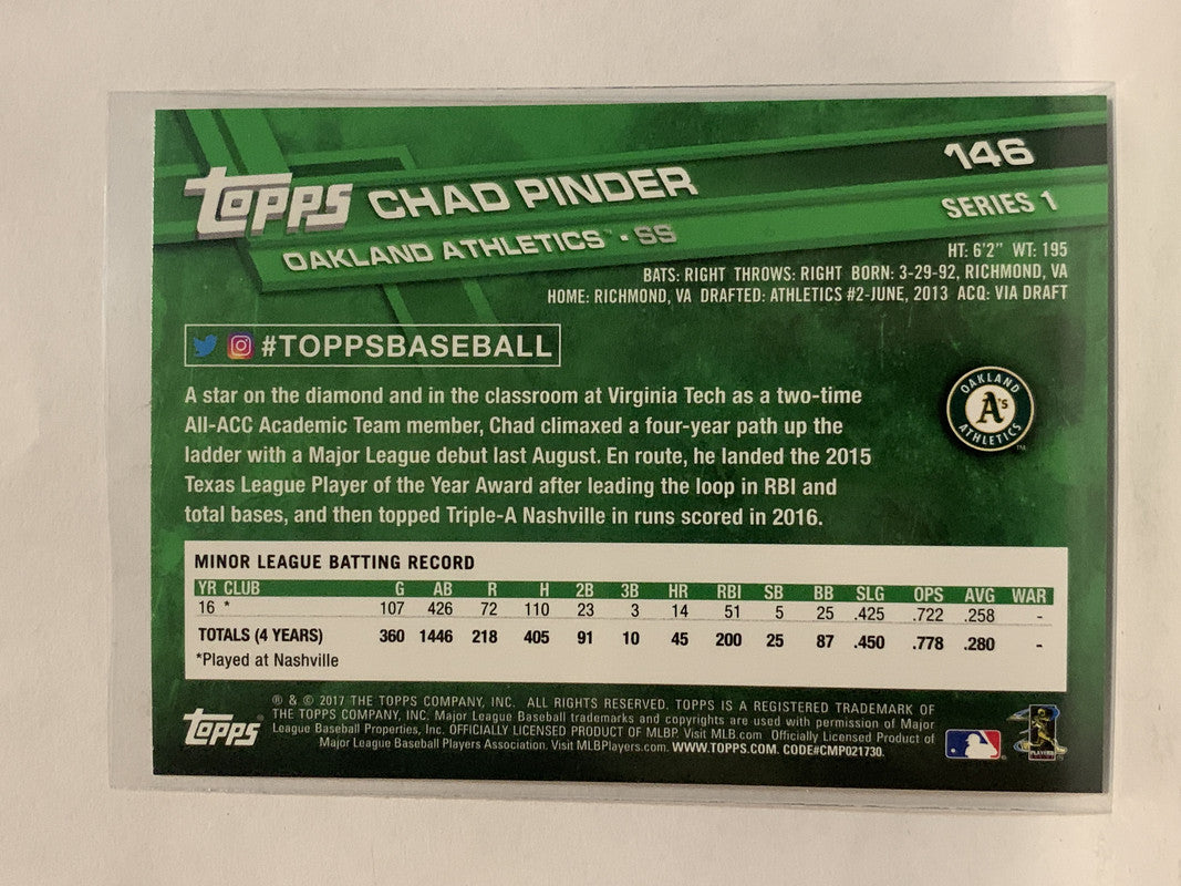 #146 Chad Pinder Rookie Oakland Athletics 2017 Topps Series One Baseball Card